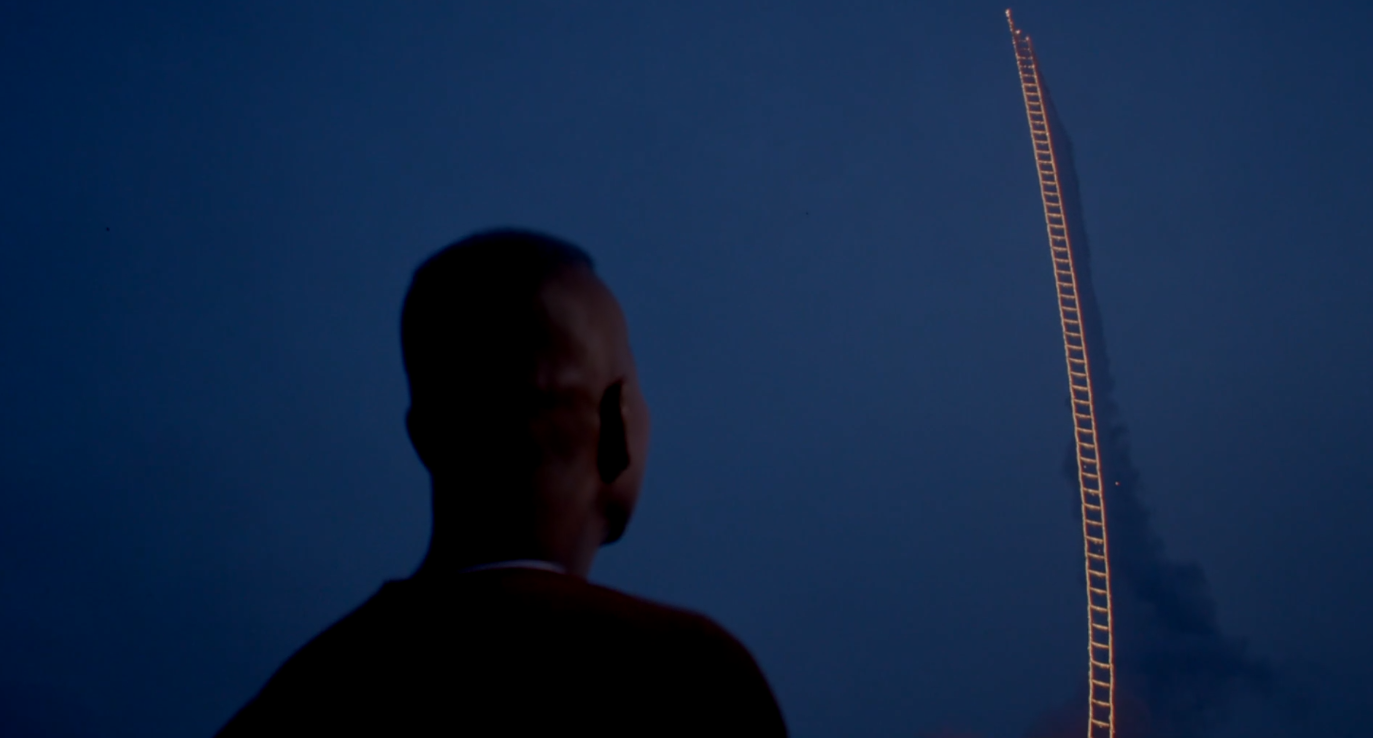 最终,这架宽七八米、长500米的梯子真的升到了天空,纪录片没有透露如此庞大的梯子,以及那么大的热气球升空有多大的开销,在我看来,这是一次大型的行为艺术,也是有钱人奢侈到顶点的终极享受。