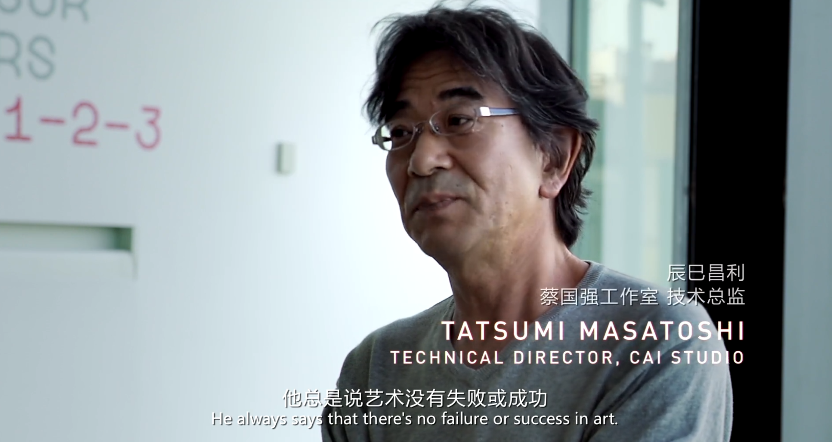 或许正因如此,蔡国强工作室的技术总监都是日本人,名为辰巳昌利,两个人合作密切,辰巳昌利帮蔡国强最终完成了作品天梯。